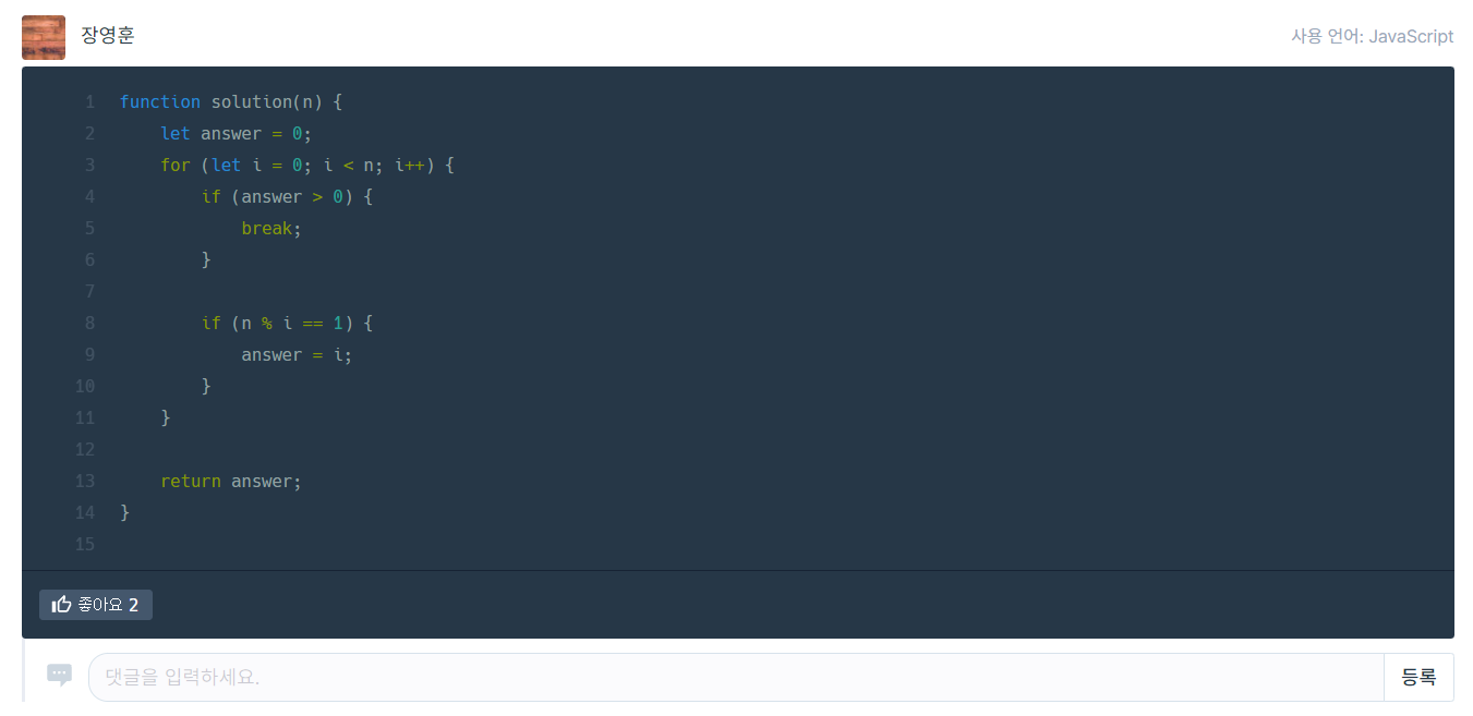프로그래머스#40(Lv.1)_나머지가 1이 되는 수 찾기 본문