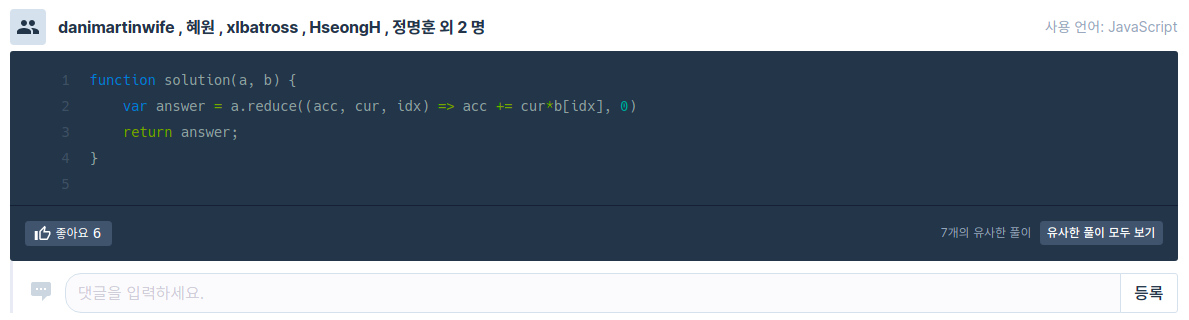 프로그래머스#44(Lv.1)_내적 본문