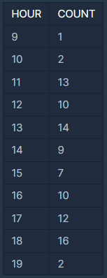 본 문제에서는 시간 데이터만 필요하기 때문에 HOUR(DATETIME)을 사용해 시간에 해당하는 정보만 추출해 사용했다.