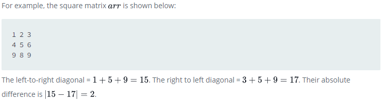 https://www.hackerrank.com/challenges/diagonal-difference/problem?isFullScreen=true