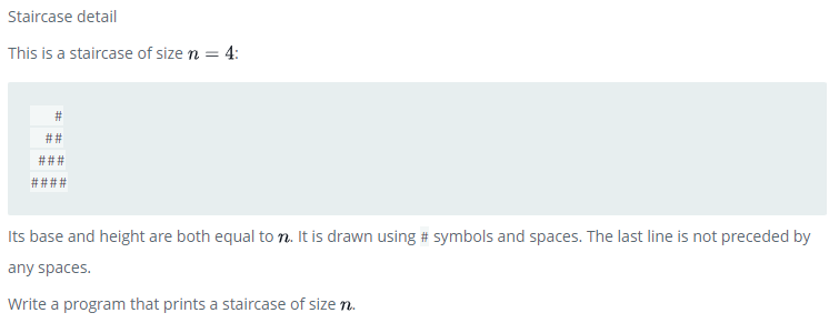 https://www.hackerrank.com/challenges/staircase/problem?isFullScreen=true