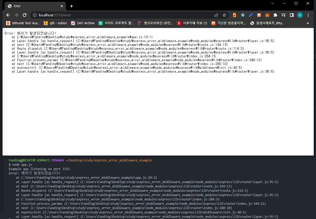 [NodeJS/Express] 미들웨어로 에러 처리 본문