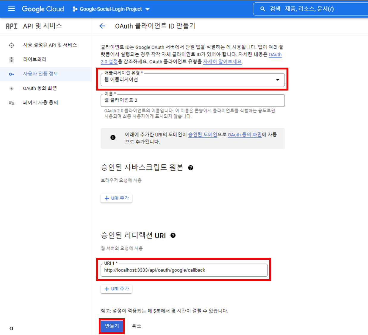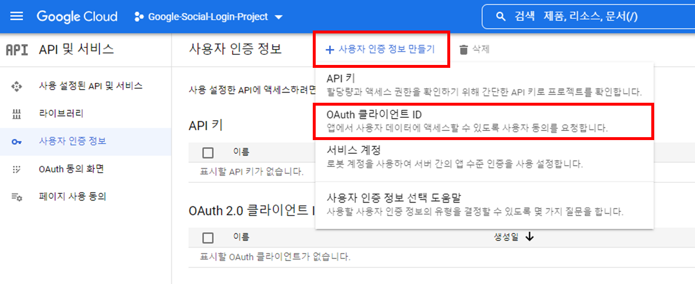 1. Google 소셜 로그인 API 키 발급 받기