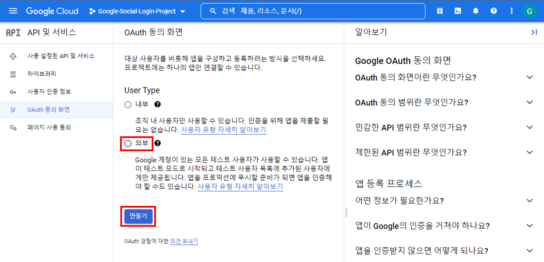 구글 소셜 로그인 API 키 발급 방법 - TraderHaru