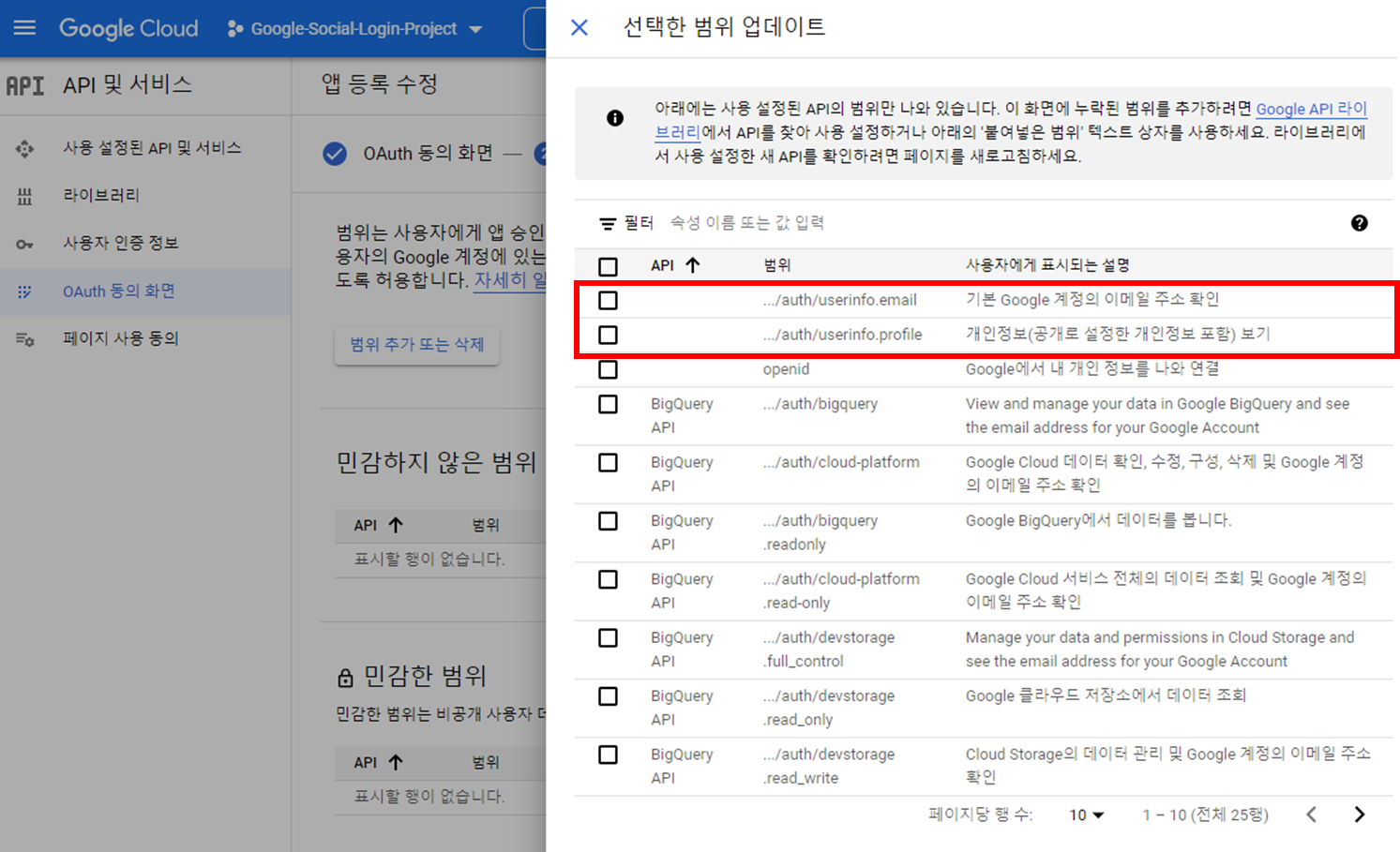 Google에서 제공하는 정보 범위에 대해서 설정해주는 단계입니다.