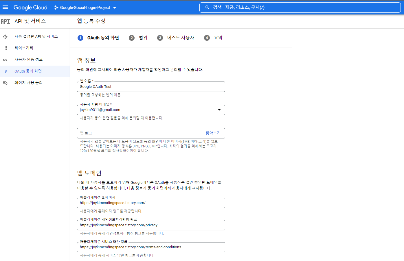 앱 도메인에 tistory 주소를 사용했습니다:)