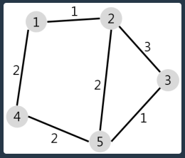 위 그림에서 1번 마을에 있는 음식점은 [1, 2, 4, 5] 번 마을까지는 3 이하의 시간에 배달할 수 있습니다.