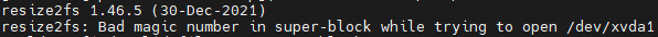 sudo resize2fs /dev/xvda1 명령어를 입력했지만