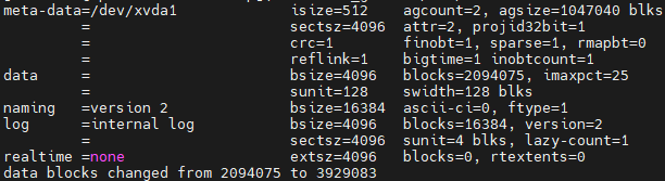 sudo xfs_growfs /dev/xvda1 명령어를 입력 후