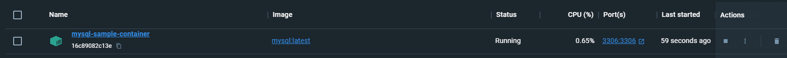 docker run --name mysql-sample-container -e MYSQL_ROOT_PASSWORD=test -d -p 3306:3306 mysql:latest