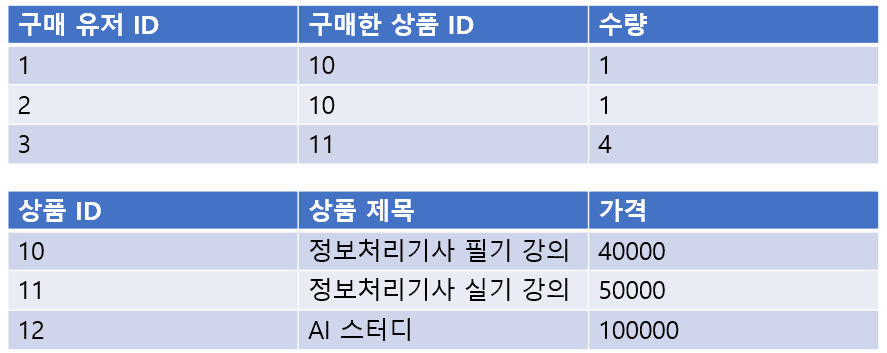 예를 들어, 상품의 판매 데이터를 저장하는 주문 내역 테이블이 존재하지만,